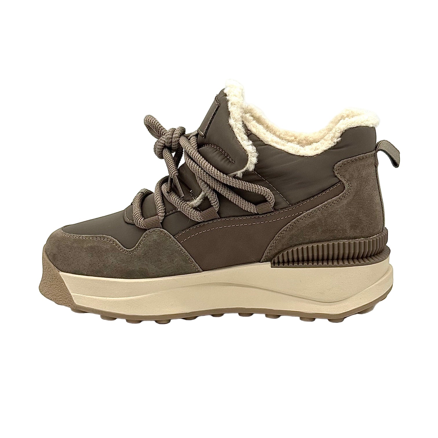 Bonavi Suede & Leather Winter Boot with Natural Fur Lining – Taupe