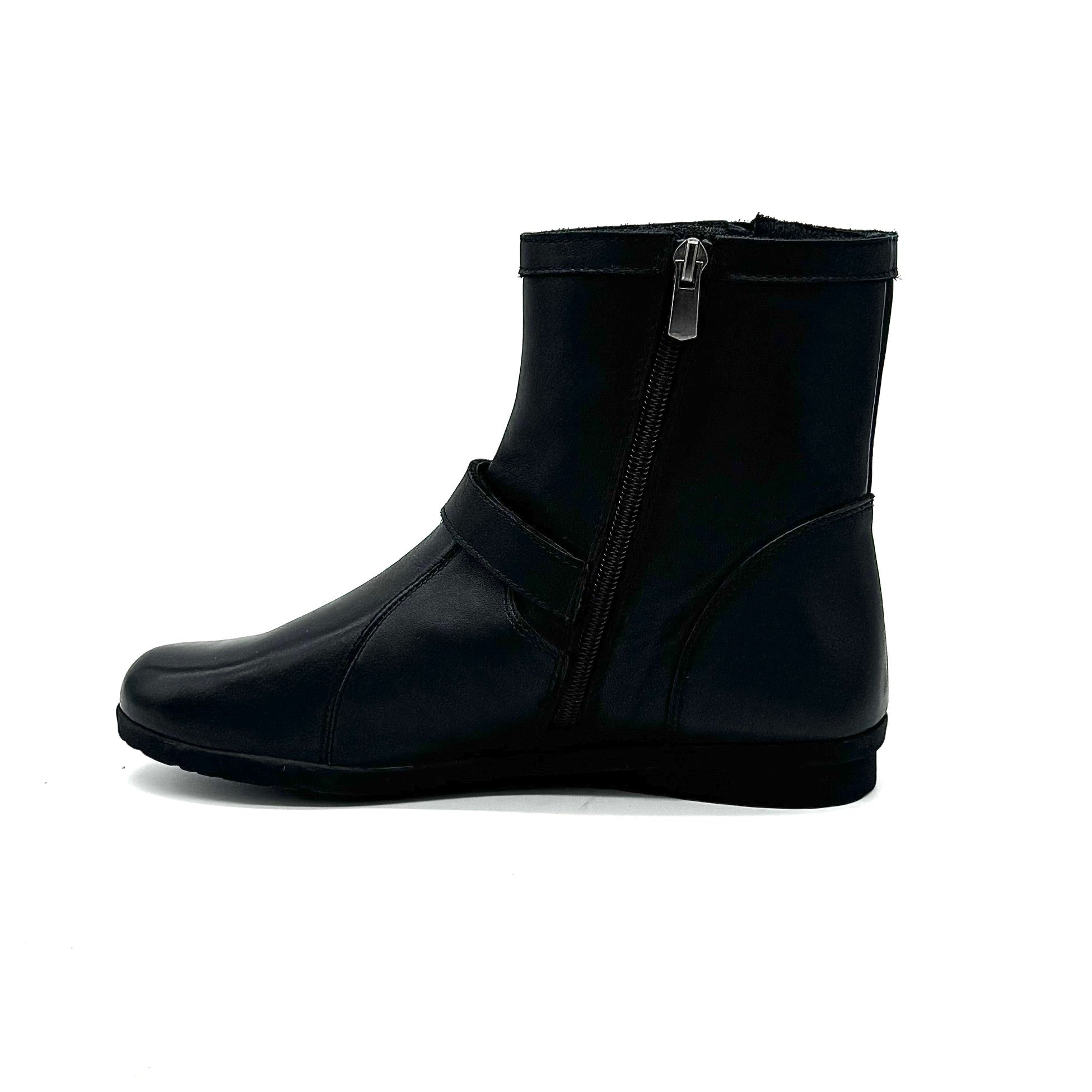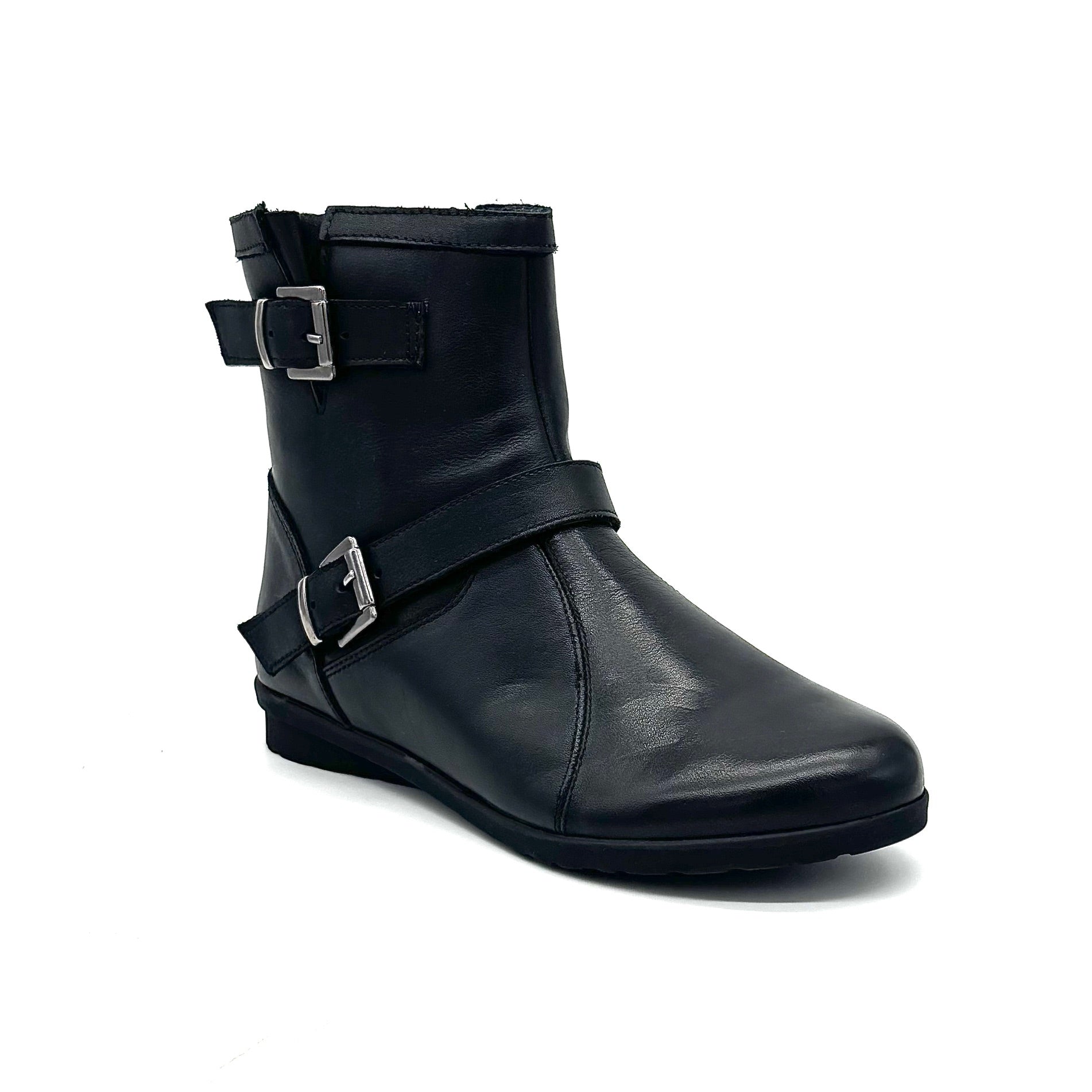 Step into sleek sophistication with the Bonavi 017-02105 boot — crafted from premium leather inside and out for lasting comfort and durability. Featuring a modern ankle-high silhouette with dual adjustable silver buckles, this boot blends minimalist style with an edgy twist. Its smooth leather finish and soft interior lining make it ideal for all-day wear, while the low-profile sole provides subtle lift and dependable traction. Perfect for pairing with jeans, leggings, or skirts, this versatile design transitions effortlessly from day to night.