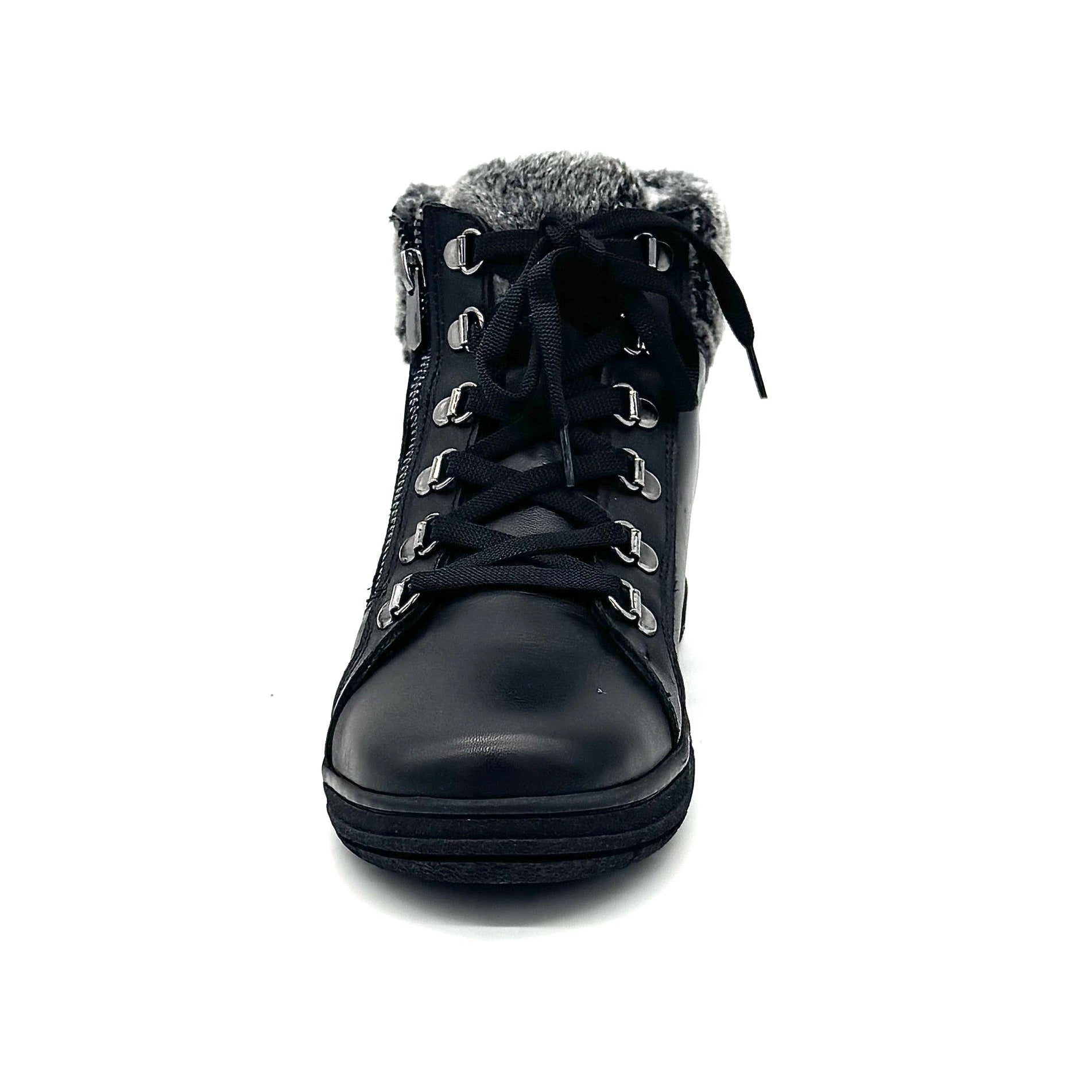 Stay warm and stylish with the Bonavi 017-13150 ankle boot. Crafted from genuine leather inside and out, this design combines comfort, practicality, and modern appeal. The soft faux-fur collar adds a cozy touch, while the lace-up front and side zipper ensure easy wear and a secure fit. Perfect for cool-weather days when you want both style and function.