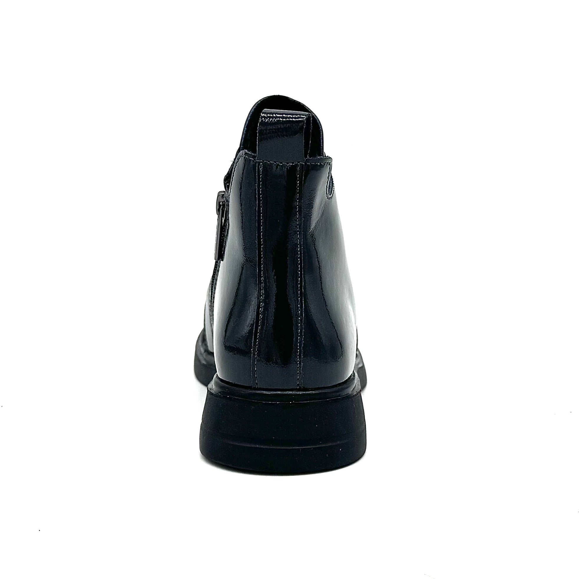 A sleek and modern ankle boot designed for everyday sophistication. Crafted from premium black leather with a subtle glossy texture, this Bonavi style combines timeless craftsmanship with a bold, contemporary edge. The durable rubber sole provides all-day comfort and stability. Perfect for pairing with jeans, skirts, or tailored looks, this boot transitions seamlessly from day to night.