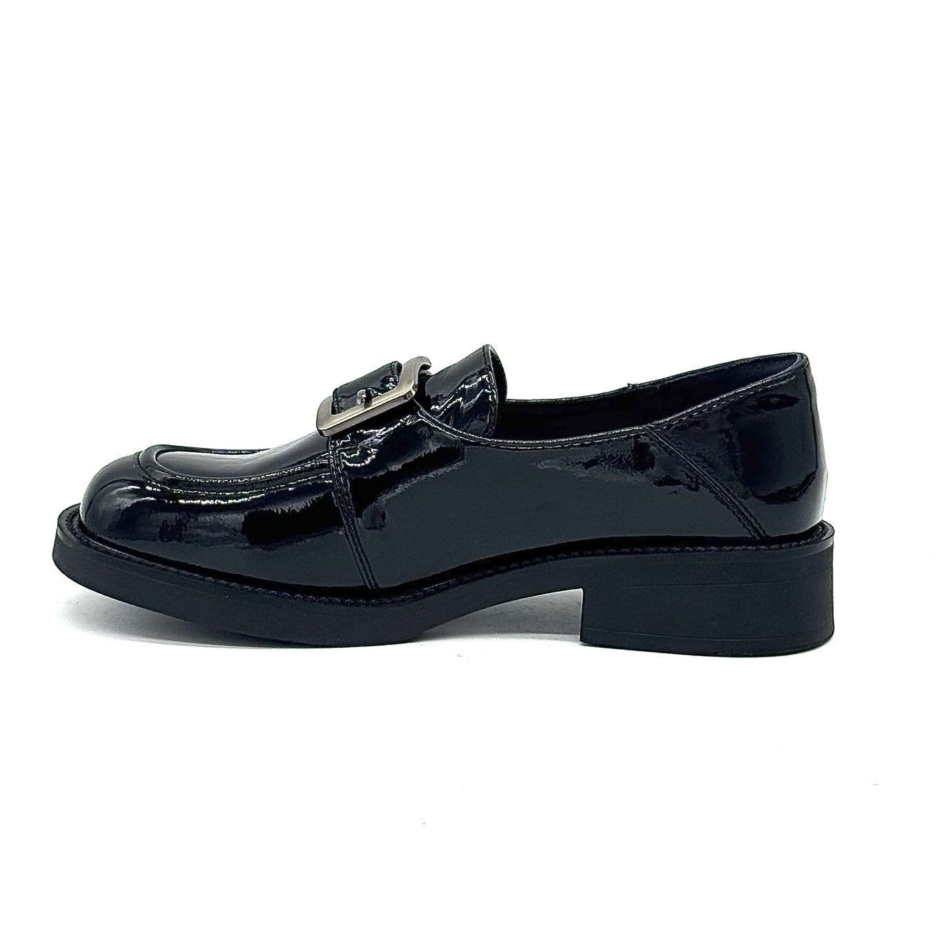 Step into timeless elegance with the Bonavi Leather Buckle Loafer. Crafted from premium leather with a sleek patent finish, this modern loafer combines classic tailoring with a bold edge. Featuring a statement buckle detail and a sturdy low block heel, it’s designed for all-day comfort and effortless sophistication. Perfect for pairing with trousers, skirts, or dresses, this versatile style transitions seamlessly from work to evenings out.