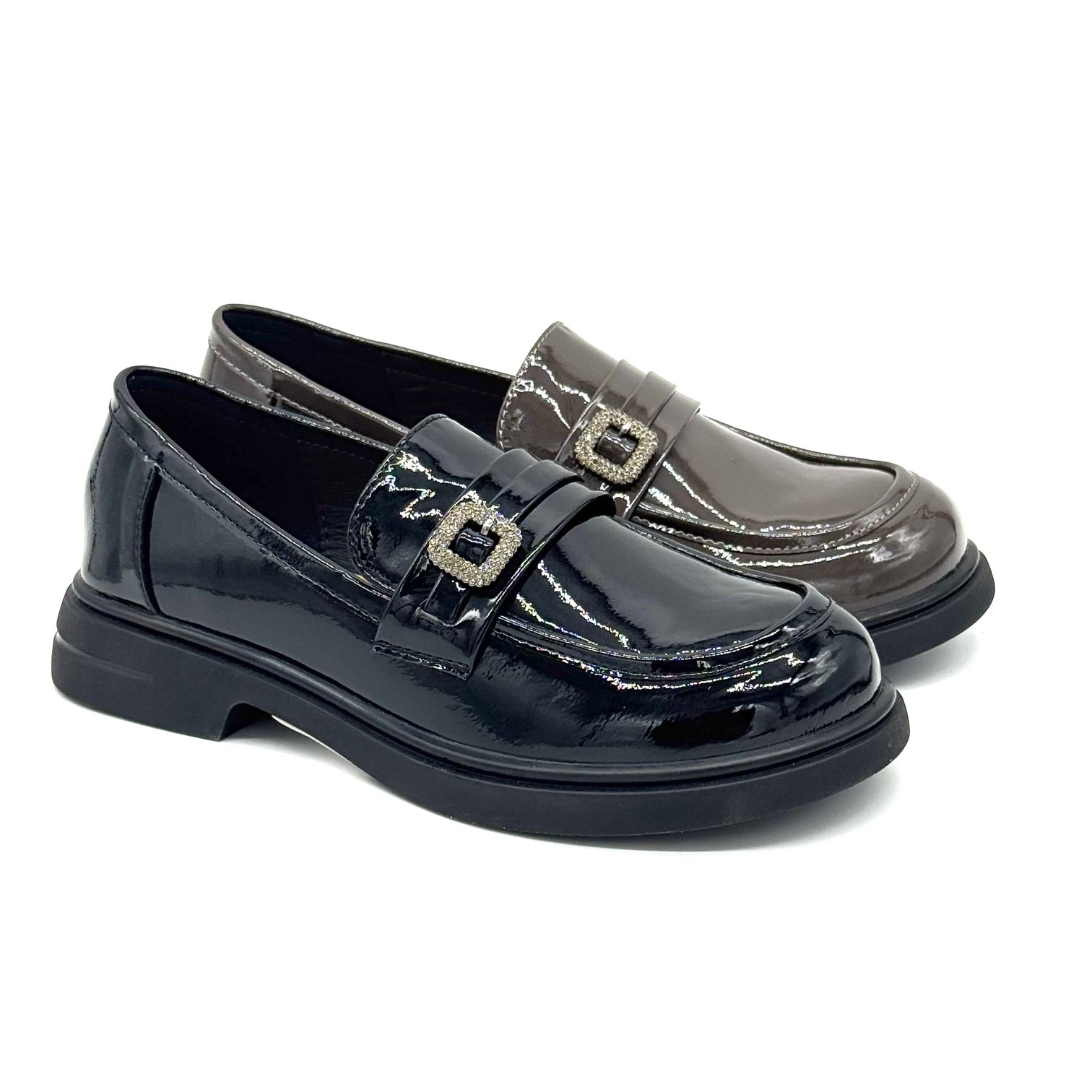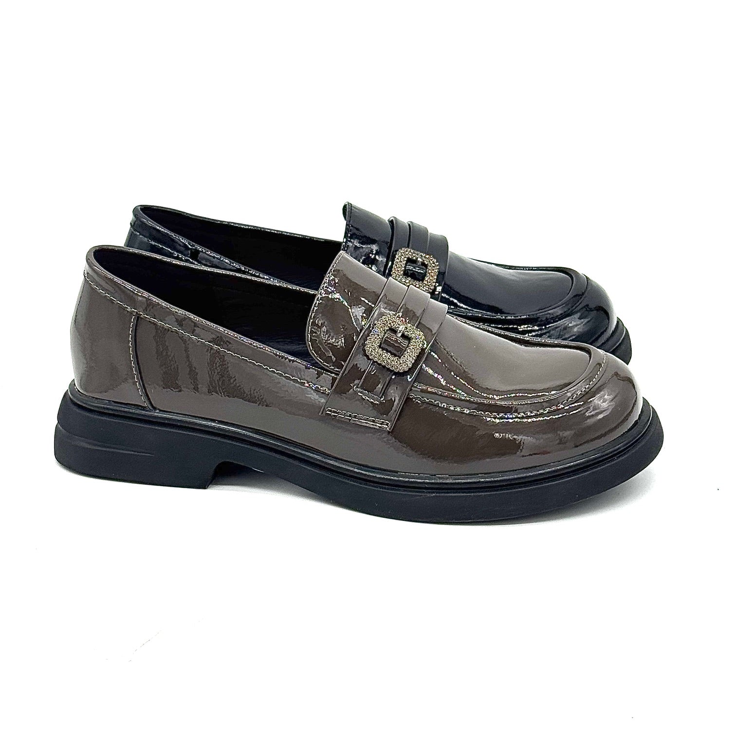Bonavi Patent Leather Loafer with Buckle – Black