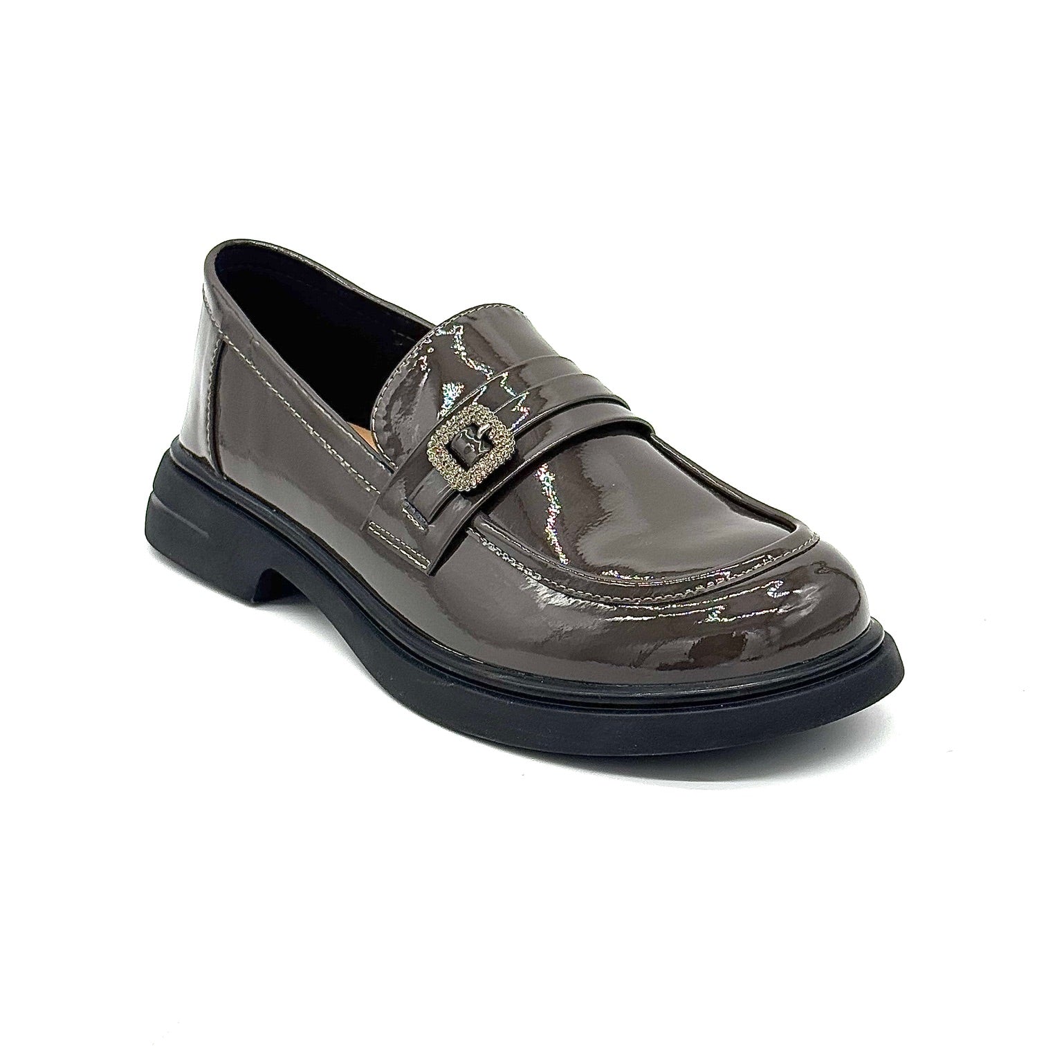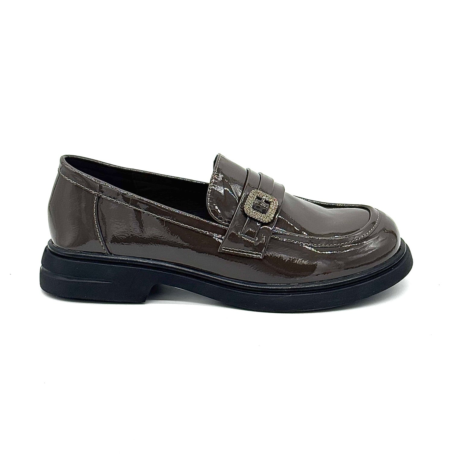 Elevate your everyday style with the Bonavi Patent Leather Loafer. Made from genuine leather with a sleek, high-shine patent finish, this loafer offers the perfect balance of sophistication and comfort. A chic metallic buckle across the vamp adds a modern edge, while the sturdy low heel and cushioned sole make it ideal for all-day wear. Whether paired with tailored trousers, skirts, or denim, this timeless design delivers effortless elegance.