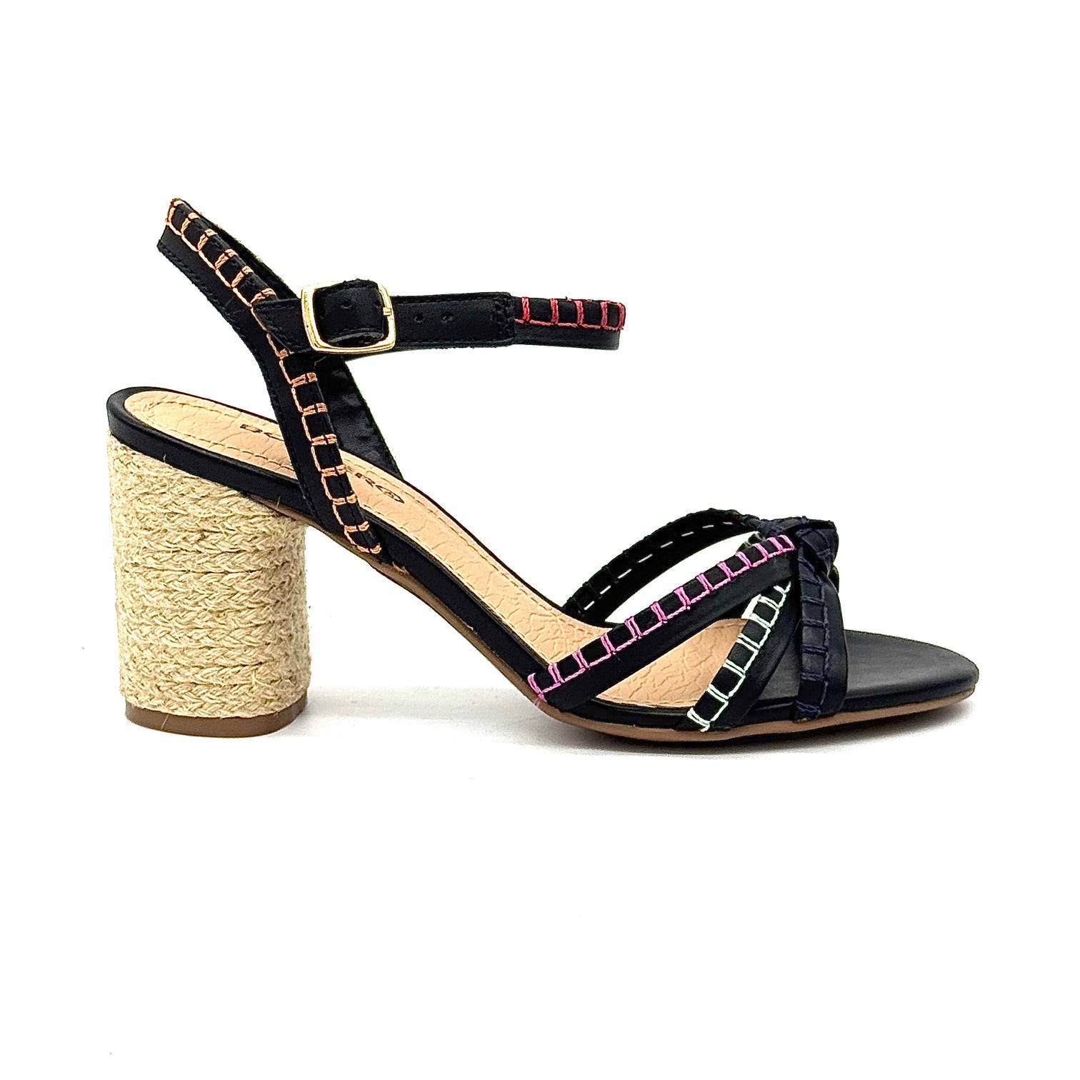 Leather open toe sandal with Rope Heel. Inner and outer are leather; Bottoms are rubber. Made in Brazil.