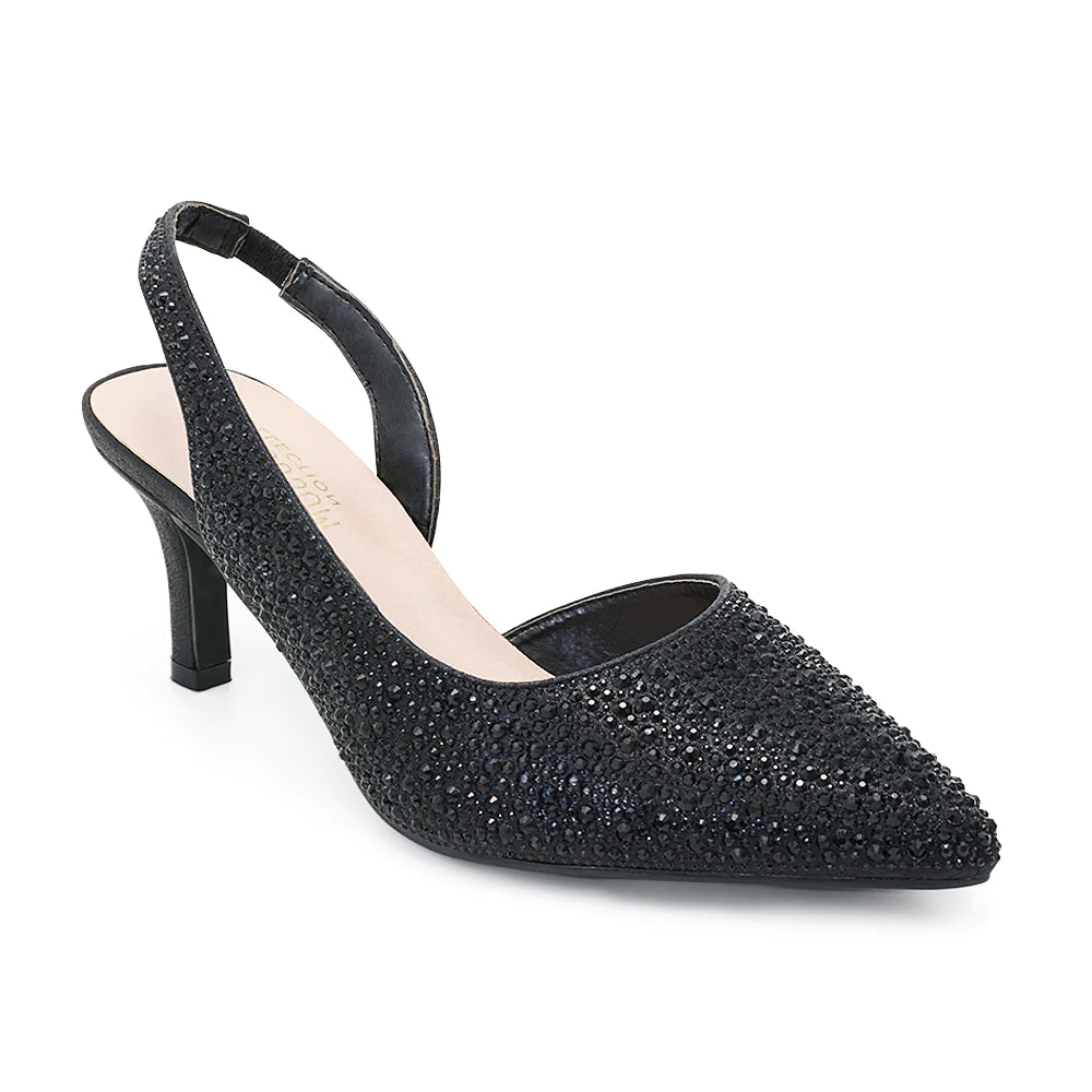 Shimmer heels feature elastic straps and a wide width fit for maximum comfort.