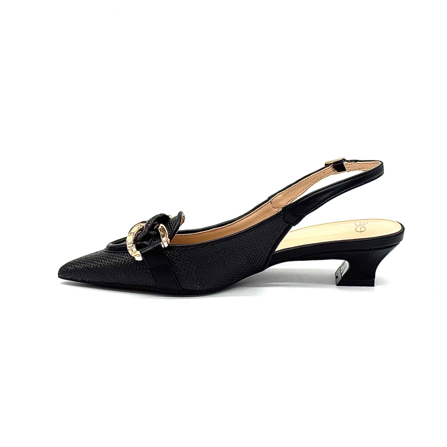 Discover the perfect balance of style and comfort with EXE (0475-12) HELEN. This conservative yet fashionable sling back features a low heel and padded sole for all-day comfort. Designed in Greece, this shoe offers both quality and elegance. Elevate your wardrobe with HELEN.