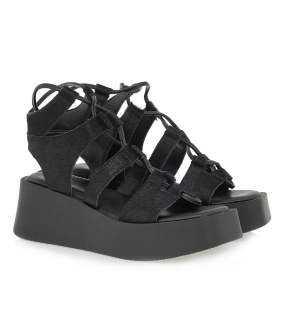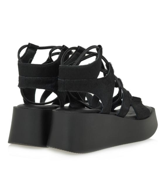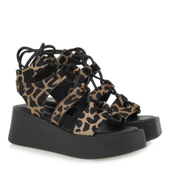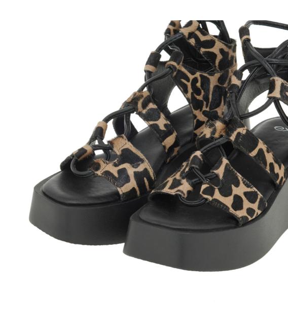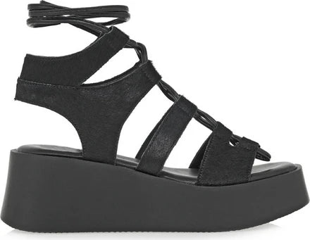 Designed in Greece, this platform gladiator sandal features lace-up ankle ties, a bold flatform sole, and a soft cushioned insole for all-day comfort. Available in classic all black or statement leopard print.