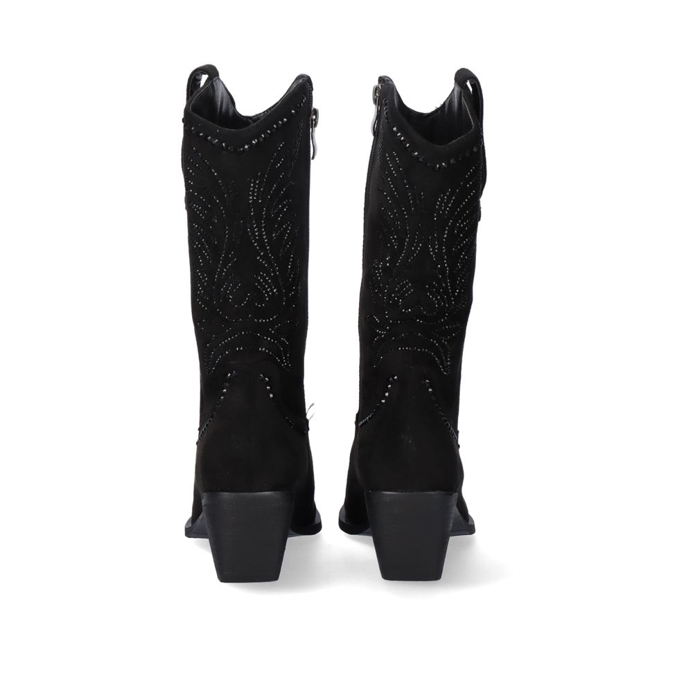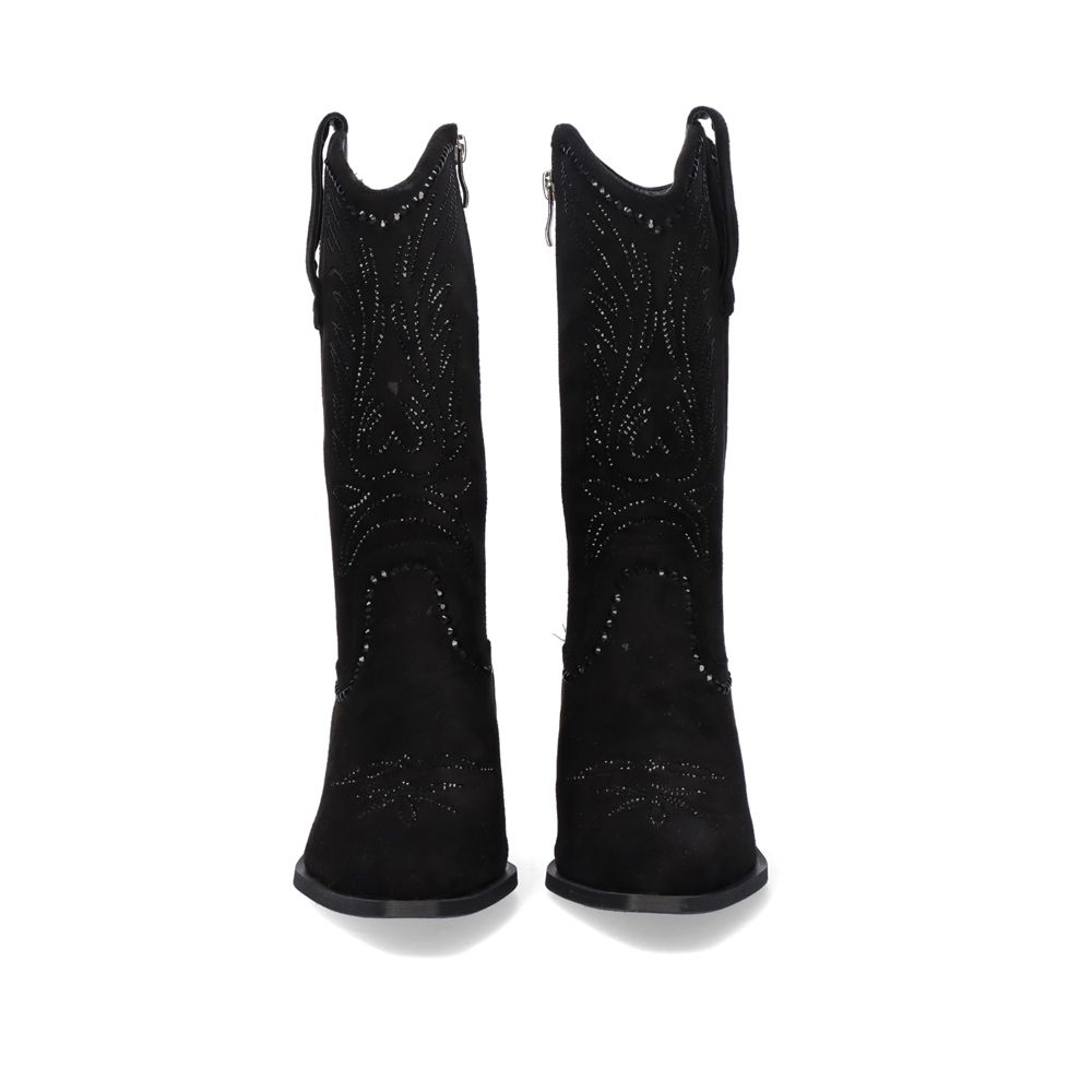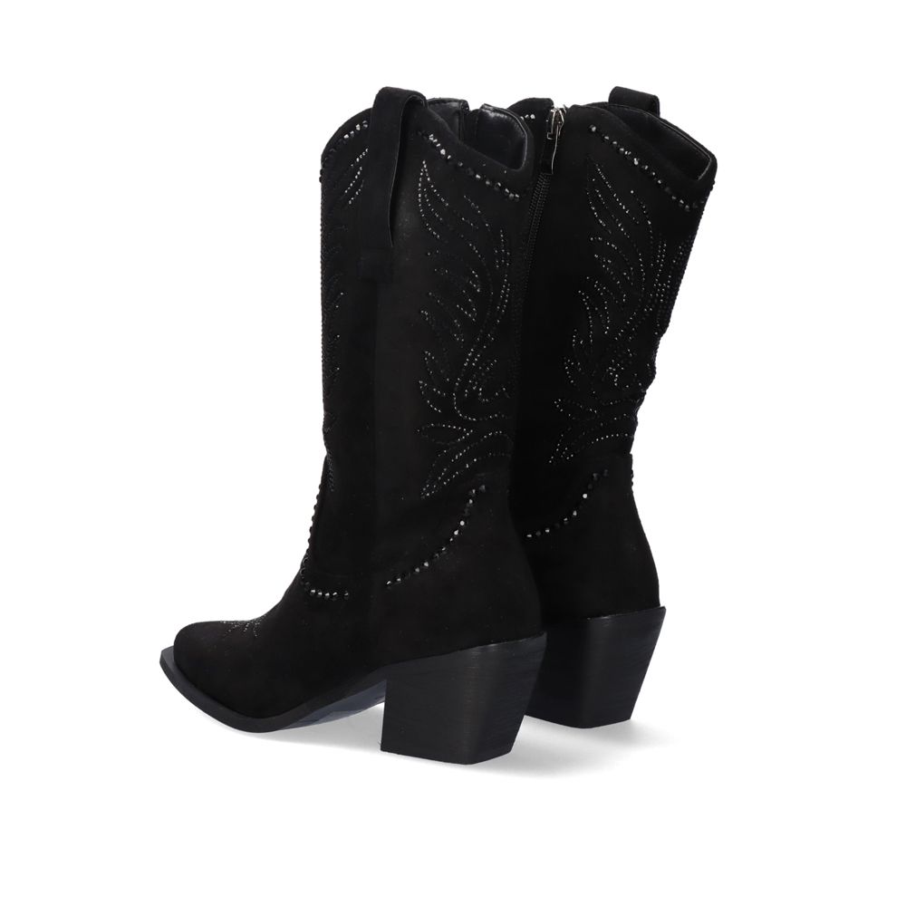 Heeled boots in black. embroidered  with stones, sole and insole are made of textile material.