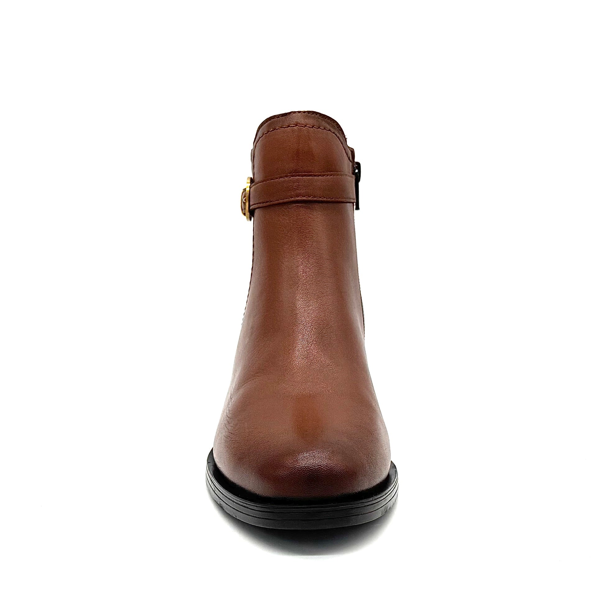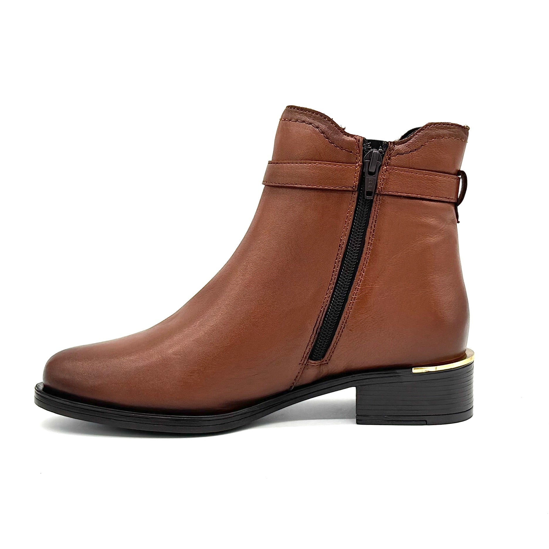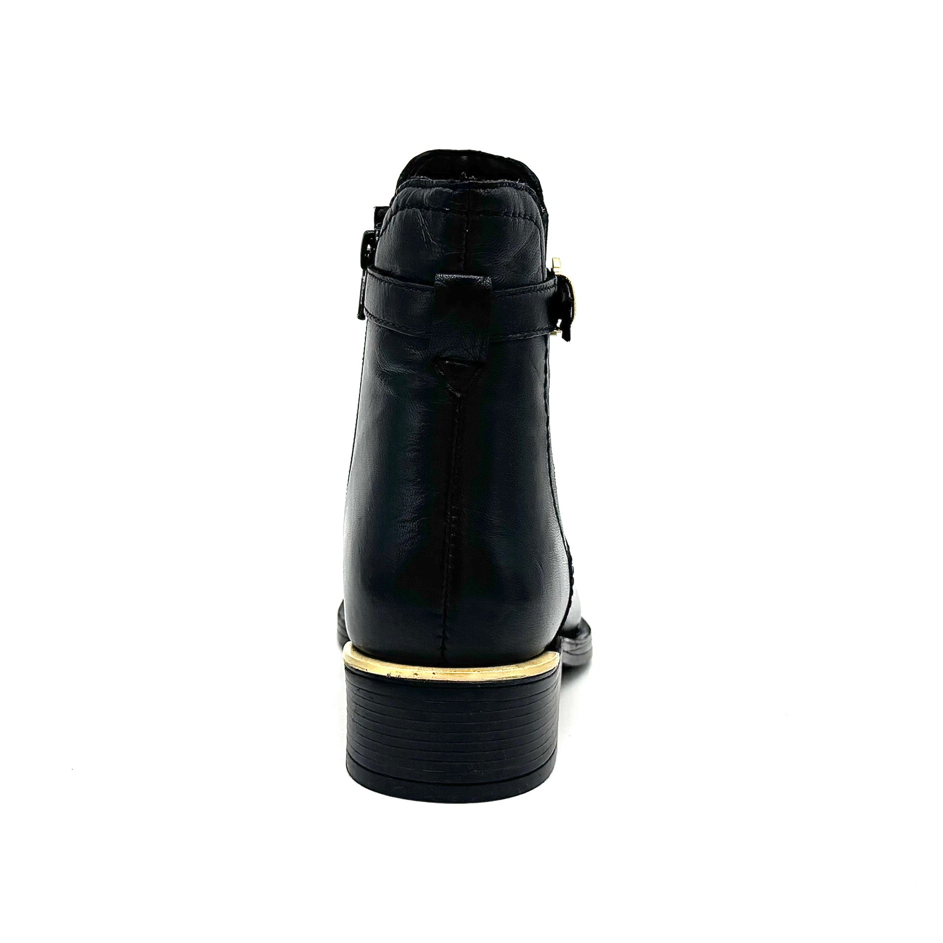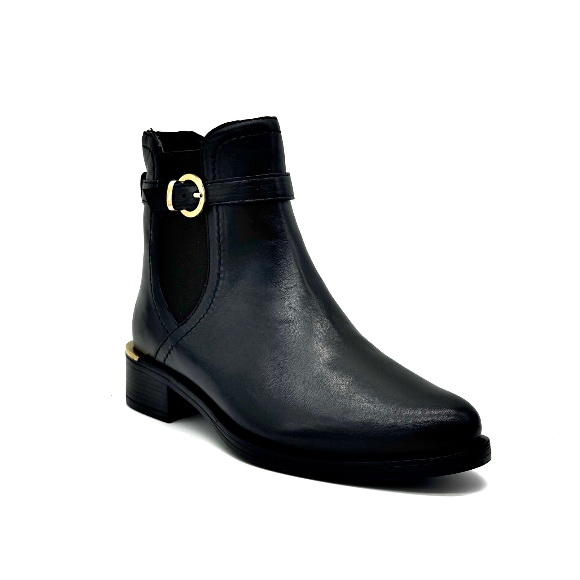 The Lauren 2316 Chelsea Boot is a timeless essential, designed with a full leather outer and a soft leather insole for premium comfort and durability. Available in rich brown or classic black, this ankle boot features elastic side panels for an easy fit, a chic gold buckle detail, and a low block heel with metallic trim. Imported and finished with cushioned support, it’s the perfect versatile boot for elevating any look, day or night.