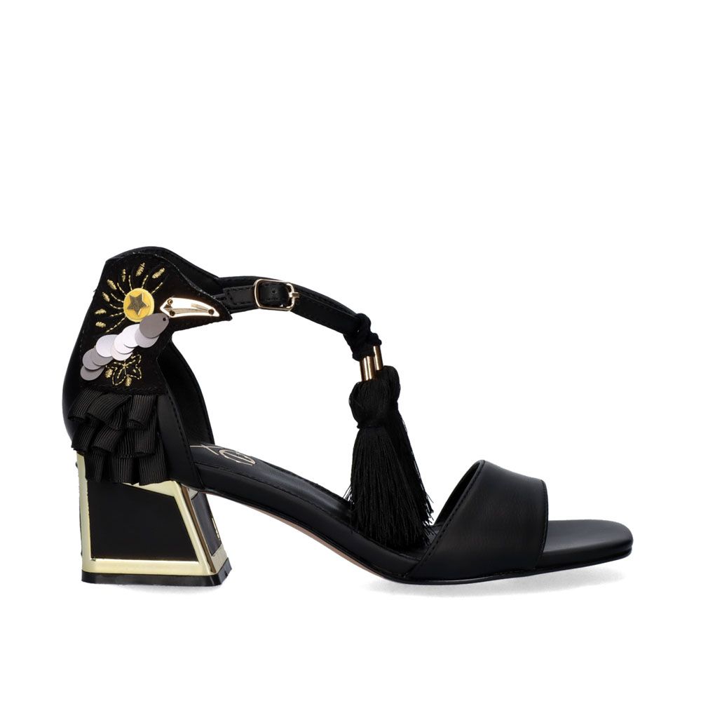 The EXE LUISA-210 Black Sandal combines a stylish block heel with exceptional comfort, making it ideal for all-day wear. Its sleek black design offers versatility for both casual and formal occasions, while the supportive heel ensures stability and ease of movement. Perfect for those seeking a balance of elegance and practicality in their footwear.