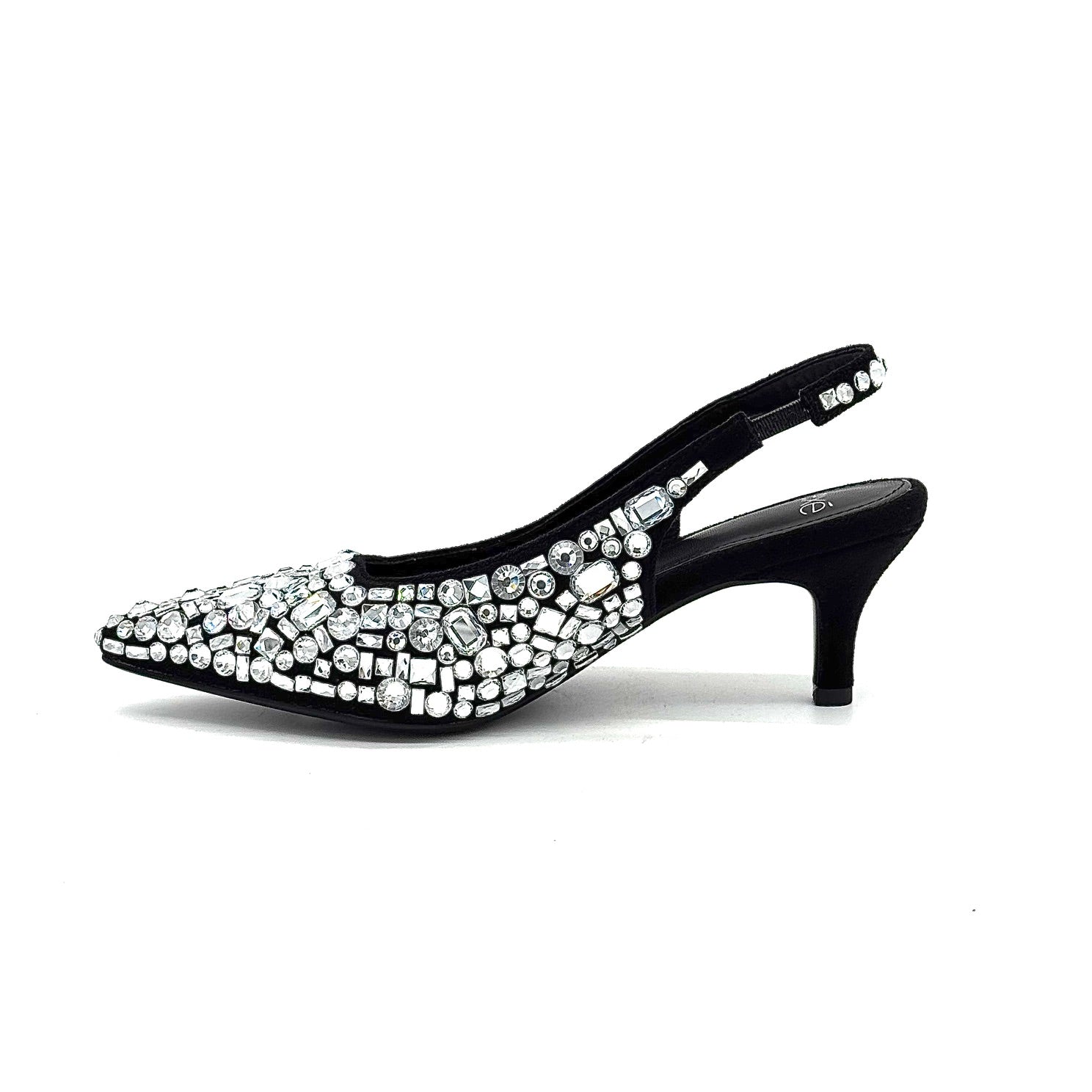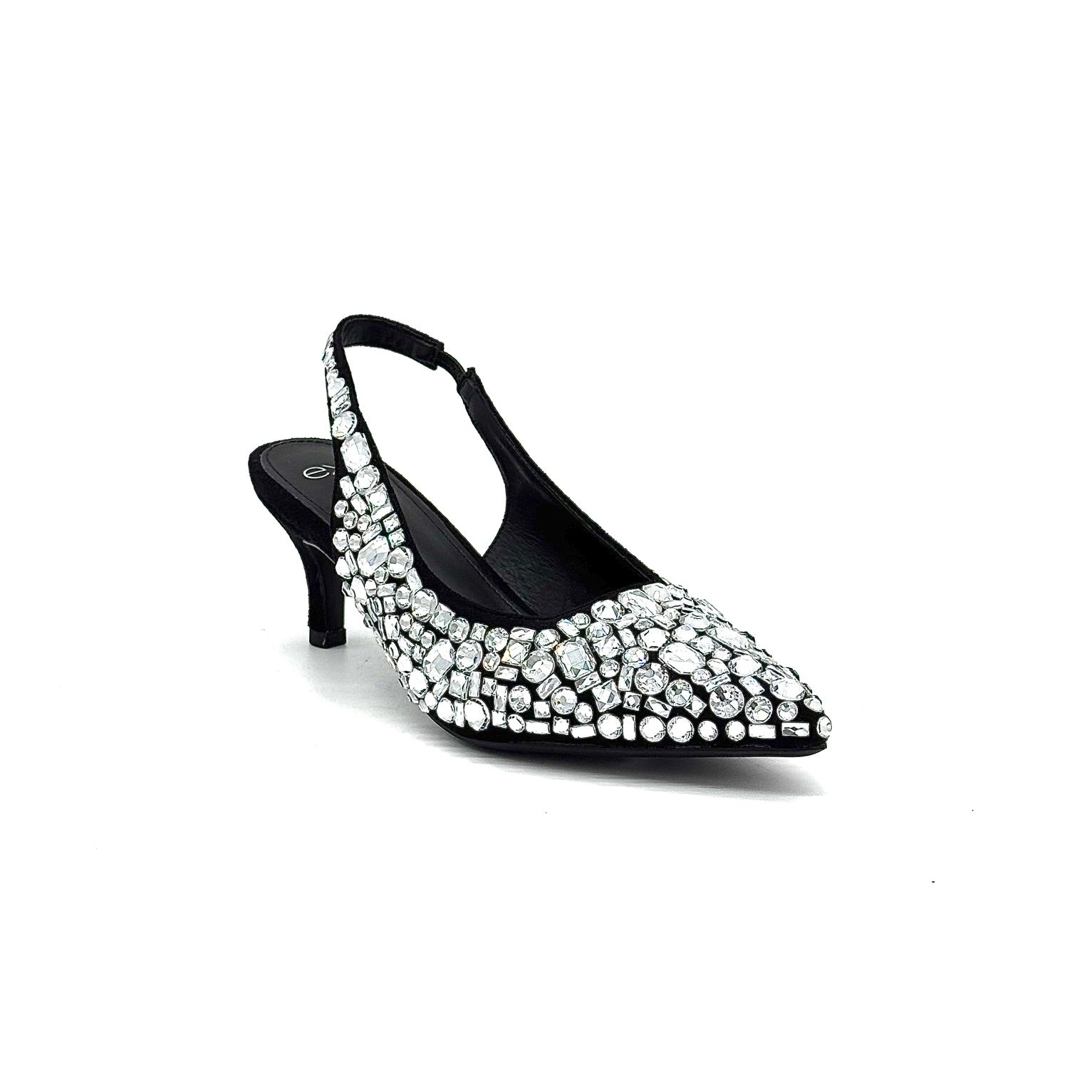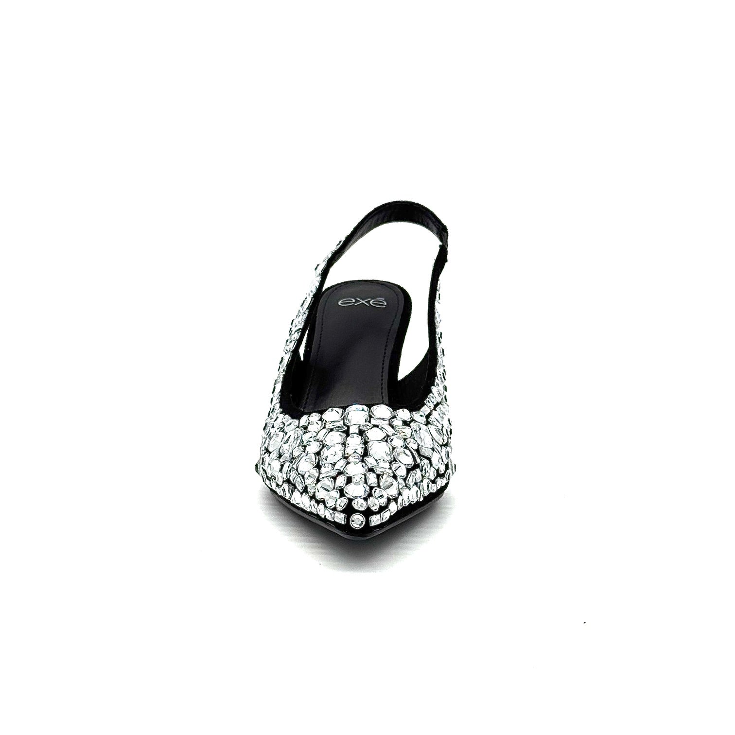 The EXE P566-H1336 MIAMI is a low heeled closed toe sling back shoe, stylishly covered in sparkly stones. Perfect for making a statement while keeping your feet comfortable. Made with superior construction and expert craftsmanship, this is a must-have for any fashionista.