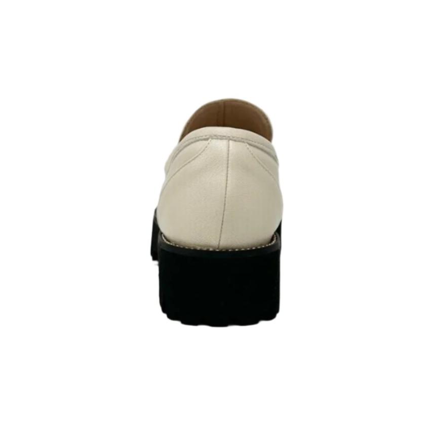 Narrow toe loafers in patent leather and black plain leather with a black platform and gold buckle detail on the front. Made up of a leather sole and synthetic insole. Rear platform height of 4 cm and front of 2.5 cm.