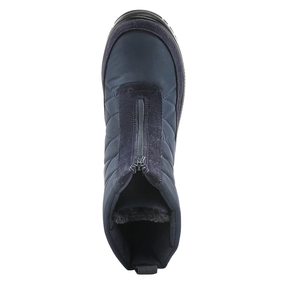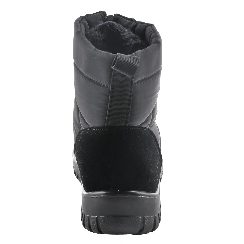 Be ready for winter and whatever the day brings you in this easy-to-wear ankle bootie. This classic quilted design, has a zipper front, extra-treaded outer sole for traction, and warm faux fur lining. Featuring a fold-out metal ice grip at the base of the heel.