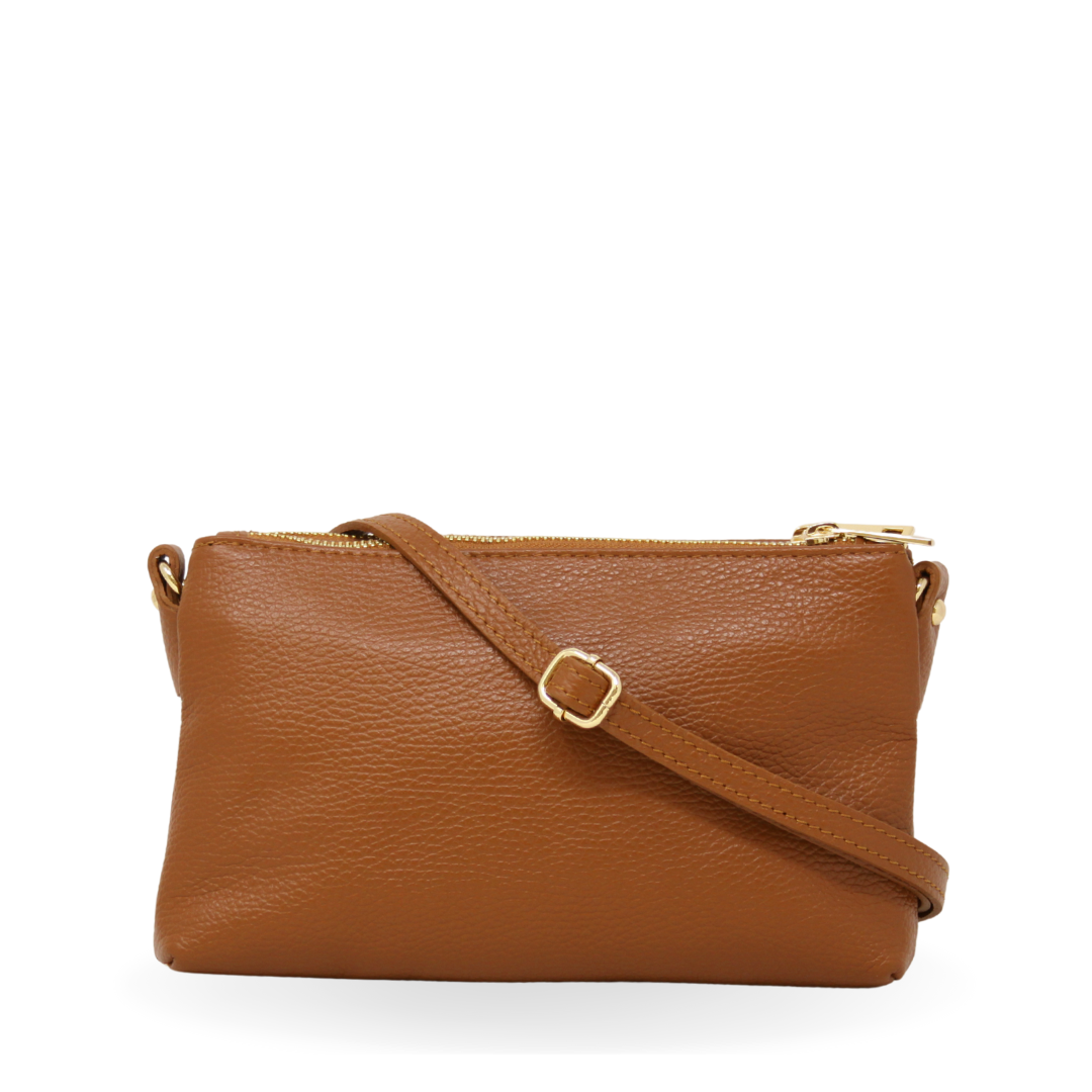 Sleek and functional, the German Fuentes 2032 bag is crafted from soft pebbled leather with gold-tone hardware and a minimalist silhouette. It features a secure top zipper, back zip pocket, and adjustable crossbody strap for easy everyday wear. Available in camel, black, and beige — the perfect mix of elegance and practicality.